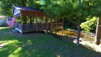 You can sit on your back deck and watch Spring Creek flow by, or fish, play in the water, have a picnic, build a campfire in our fire pits on the creek bank, sit in the gazebo and read, or watch the birds. Our pavilion and gazebo are perfect for family reunions, weddings, receptions, baptisms… whatever! So bring your family, church group, or yourself. We hope to make your stay as enjoyable as possible.